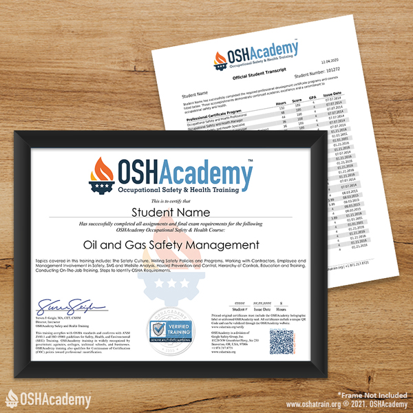 As an OSHAcademy student, you have free access to all our training materials, including knowledge checks and course activities. Documentation of your training–such as exam scores, certificates, and transcripts–can be accessed by purchasing a certificate package.