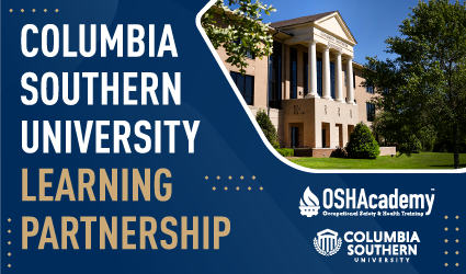 At OSHAcademy, we go above and beyond in online occupational safety and training. In addition to our comprehensive training courses, such as the EM 385-1-1, HAZWOPER, and 10- and 30-hour courses, we also give students access to exclusive certificate programs at Columbia Southern University, emphasizing our dedication to top-tier education.